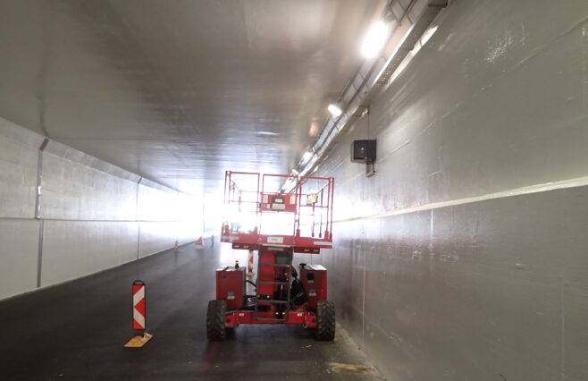 • Signalisation: Installation neuer Rettungs- und Fluchtwegsignalisierungen mit nachleuchtenden Schildern, die Richtung und Entfernung zu den nächsten Notausgängen anzeigen. Zudem wurde die bestehende Stauwarnanlage durch eine neue, voll funktionsfähige Anlage ersetzt.